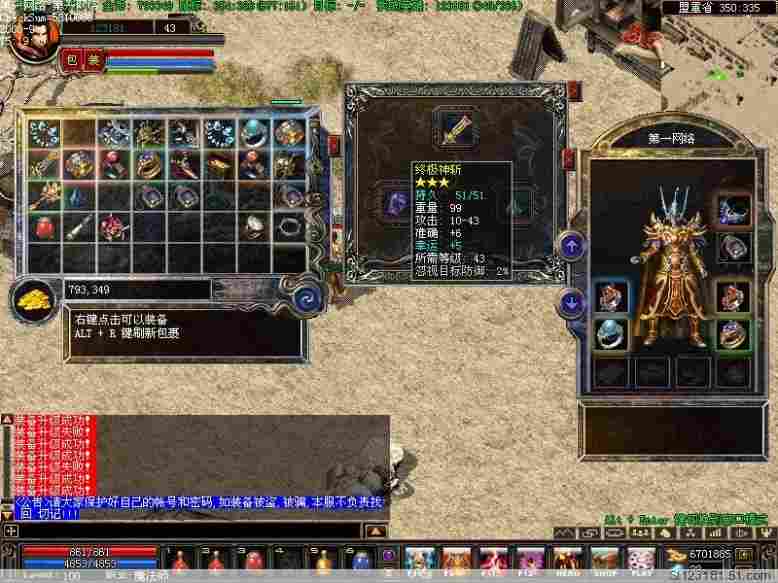 8,增加发送物品属性图片.操作办法:将物品放在包裹.按住SHIFT.再点一下物品.就可以了,极品版非常实用
