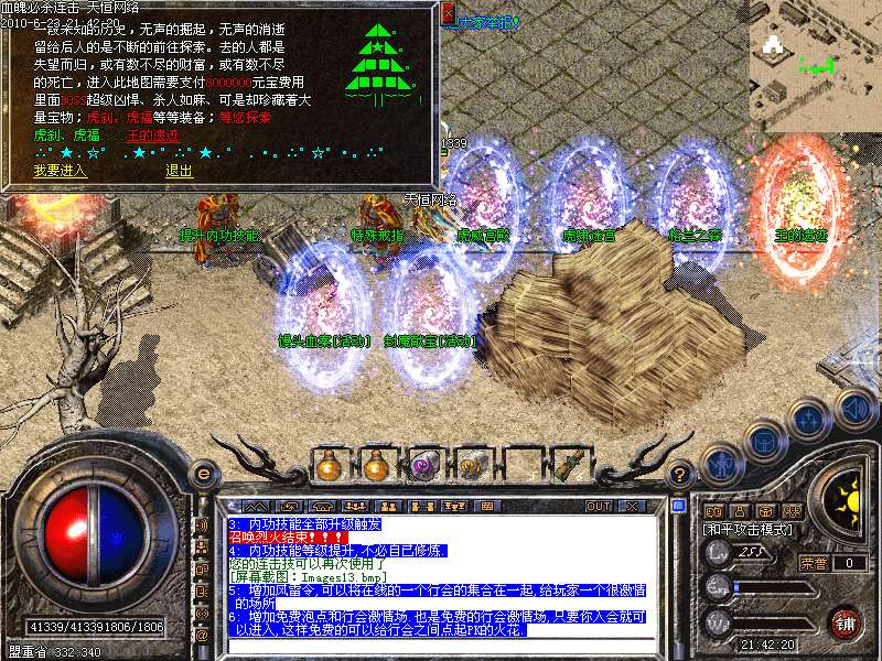 10: 新地图,荣耀之巢.虎威宫殿,虎啸迷宫.格兰之森.王的遗迹,必杀塔(注:内有乾坤 请玩家亲自体验!!!)