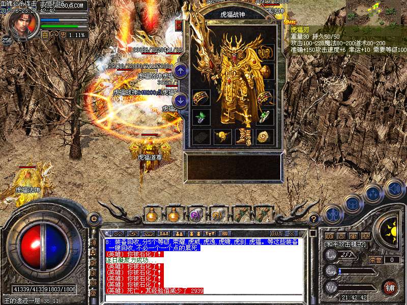 8: 装备回收,分5个等级,荣耀,虎威,虎逸,虎啸,虎刹.虎福。等这些装备一键回收,不必一个一个点的累死.