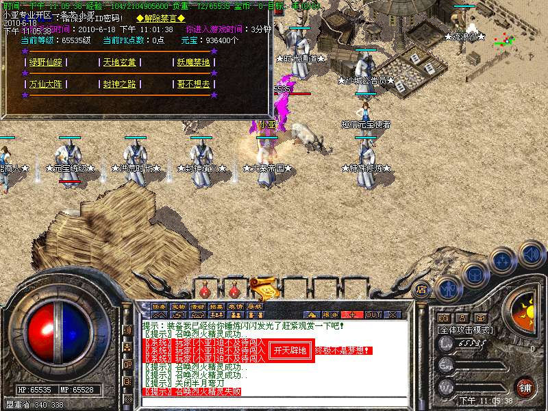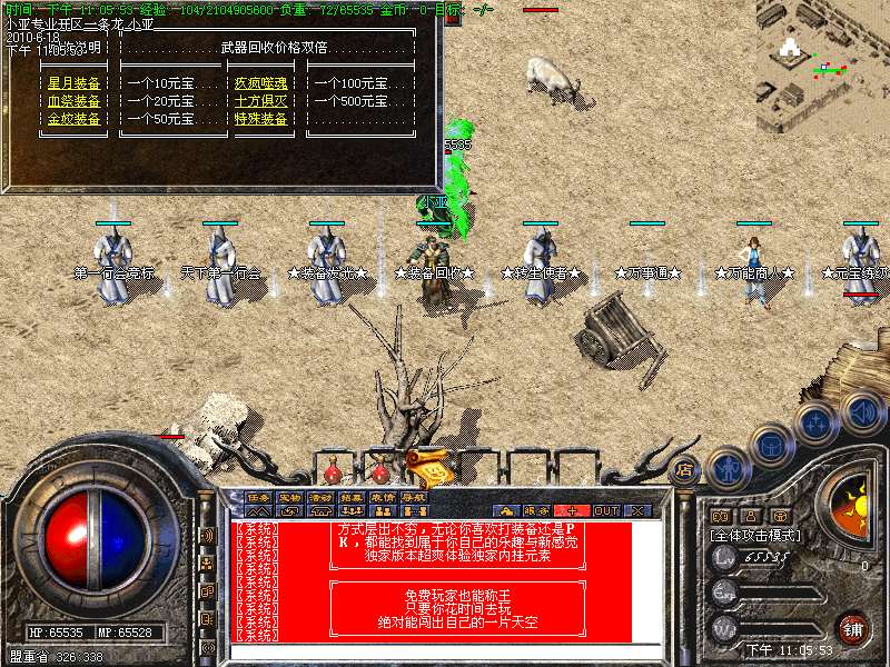 [攻城奖励]:开区第三天全体行会集体拿沙,第一任沙城行会奖励4W元宝+终极武器,以后每次拿沙奖励2W元宝!