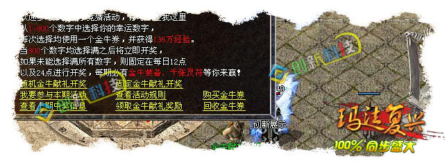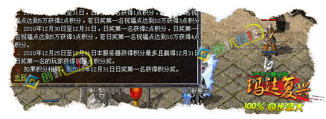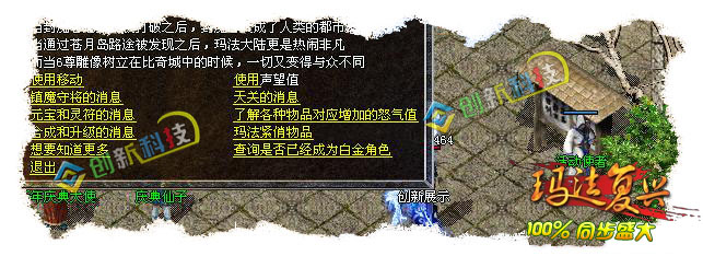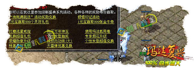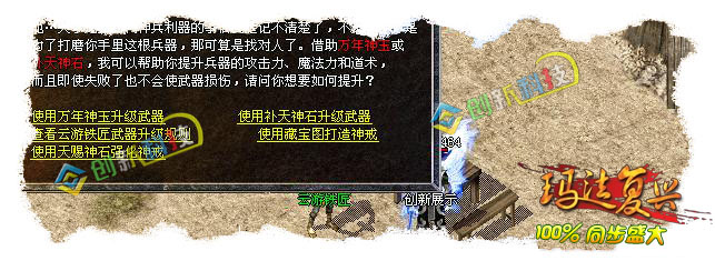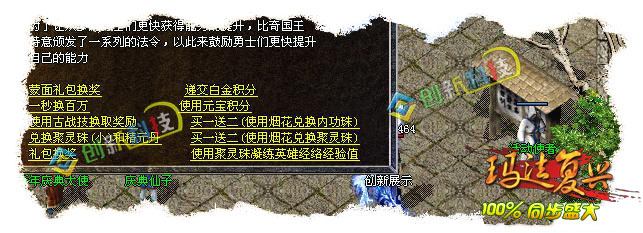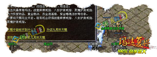 这个版本耗费了我很长的时间和经历,由于官方更新的太快,所以我有点措手不及,目前只做到了1.9.9.10其他的东西我会慢慢的更新。因为工作室的人比较多,另外我个人专门研究仿盛大的脚本以及功能,所以整个版本在功能上不存在什么问题。此版本在NPC上99%与官方同步,一些大的功能基本实现(比如王者大使、烽火台、冲级赛、擂台赛等等),细小方面的包括新手成长任务在内的所有任务都可以正常使用,保证100%和官方一样。装备方面除了一些特殊属性不能实现外其他属性我都是一一对照官方设置;在地图刷怪方面严格按照官方设置,尤其是一些重要的地图基本上同步官方;暴率方面存在一定的缺陷,因为我在官方的号才57级,所以很多怪物并不是特别清楚具体的暴率,但是小怪基本一致~