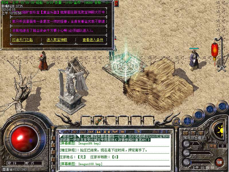 1、商城位于经验条边上的[铺]字,内可购买:三倍经验勋章、金条、传送符、祝福油……等物品以辅助玩家发展游戏。