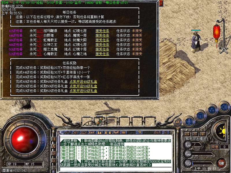 2—— 并重金聘请高级程序师策划游戏平衡系统。一切装备靠打元宝地图和非元宝地图均可以爆出,取消一切靠元宝经验升级的捷径,更平衡了三职业。