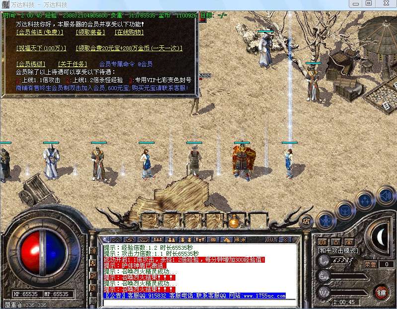 高级服务生处可以免费领取每天一小时的双倍经验,每天免费开启1.2倍力量,每天一次免费进入本服终极地图魔龙庄园