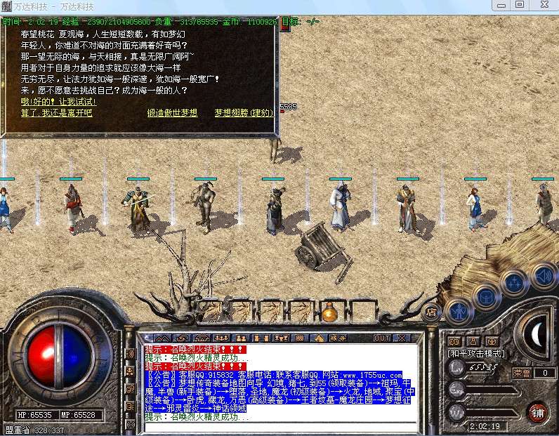 元宝乐园每2小时刷一次梦想的翅膀,打死它可以启动你的梦想征程..任务即将开始,具体查看盟重老兵任务系统
