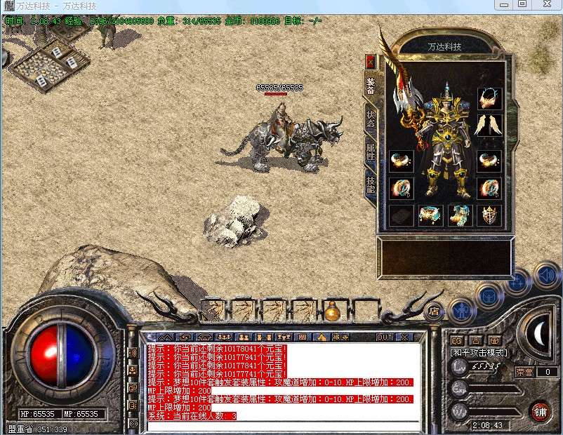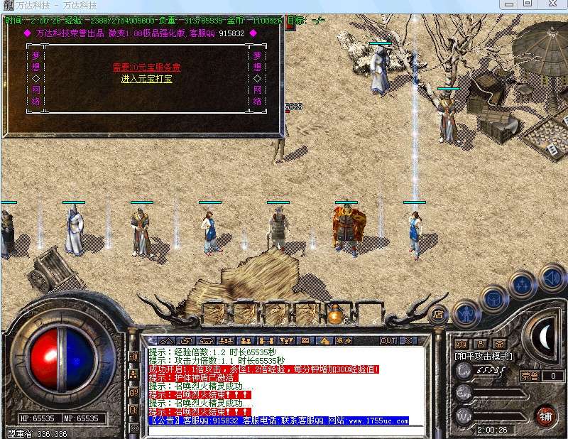 本服暴率较高,大家很快有中级装备,稀世装备比较难爆,版本是在仿盛大1.85基础上,更新到了最新装备和装备技能,功能更多,任务奖品丰富,活动激情无限