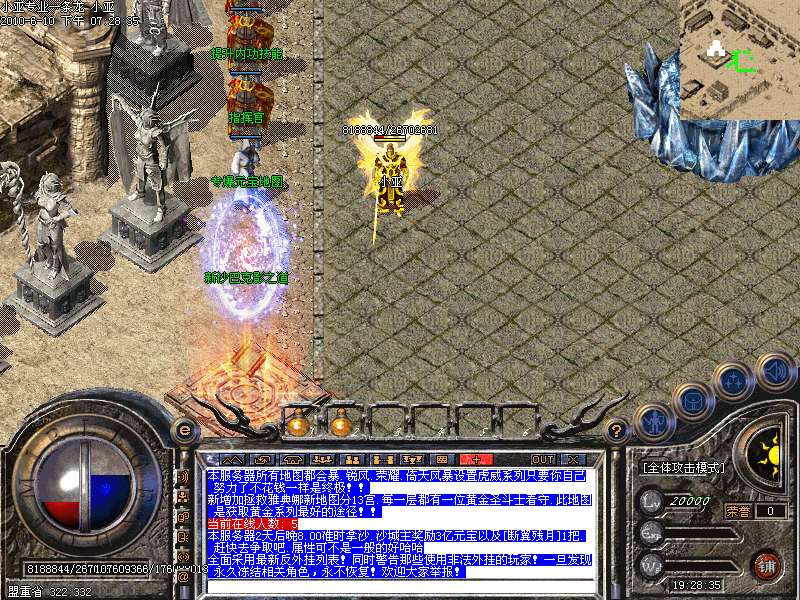【攻击模式】攻击模式同样是用Ctrl+H切换,在右下角显示你等级上方可以看到你目前使用的攻击模式