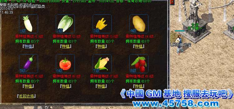 9 【农场系统】 土老兵边上可偷菜!开通500YB即可。。。。。。。。。。。。。。。