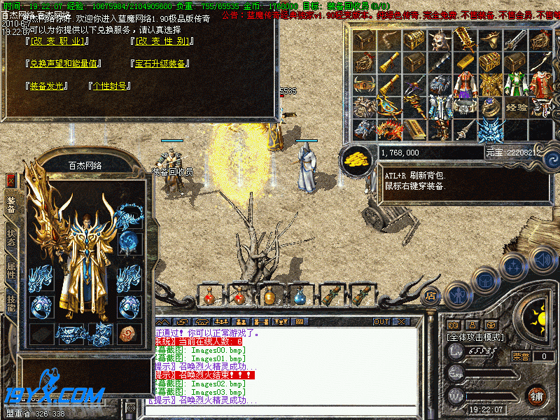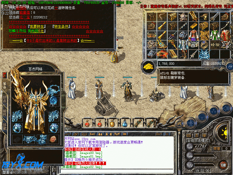 ★修正练级问题,练级变的非常容易,新手去蜈蚣打怪升级,基本是满屏的怪物 ★增加宝箱系统,可以开出本F所有装备 ★为普通玩家考虑,新增专暴元宝地图,只要你用心打,一天赚5000个元宝是没问题的 ★增加灵魂属性系统,有元宝的玩家可以去试下,效果是非常不错的~ ★增加坐骑系统,坐骑需要在天机老人那里合成,带防麻痹属性,帅就一个字 ★ 烟花之地,玩家可通过打怪获得九珠连环炮,或在商铺购买,燃放后有机会进入此地图,暴率是外面的3倍,暴本服终级装备 ★ 天邪圣地,共4层,装备暴率是外面的2倍,暴本服终级装备 ★ 幽灵禁地,装备暴率是外面的2倍,暴本服终级装备 ★ 飘渺神殿,此地图刷本服所有BOSS,暴本F所有装备,包括金牛装备 ★ 最新增加装备回收,大家可以把多余的装备换成50万~100万~200万~500万~等不同的经验~不用元宝练级也快 1 新增加稀有物品,稀有物品可以打造至+9,85级装备!打造成+9只需10件普通稀有装备!
