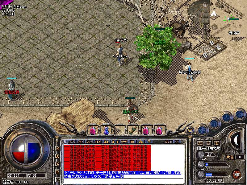 (*)开区第4天攻城,第一届攻城奖励6666元宝.以后每天都晚上攻城,攻城结束奖励300元宝.攻城不需要交头像