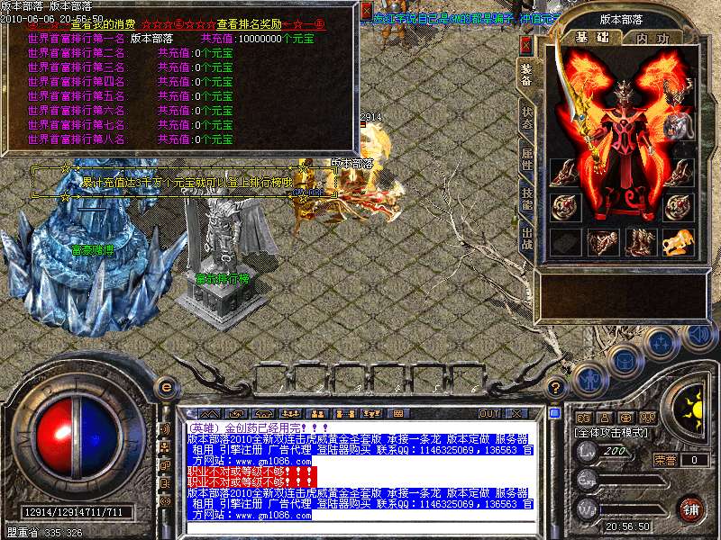 本服增加富翁排行榜。只要你充值积分达到3千万个元宝就可以登上排行榜哦,积分上6千万就可以领取超级套装和特殊戒指