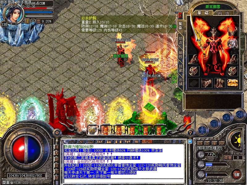 新手上线倒计时送连击技能,百级技能,打通全部经络。55级自动穿上王者套装