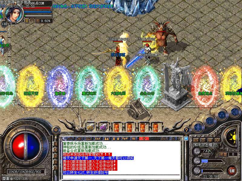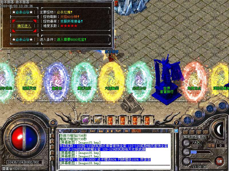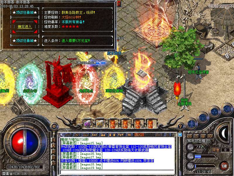 增加地图:顶级狂暴城,六道轮回(六层),狂想天空(四层),必杀山谷(四层)
