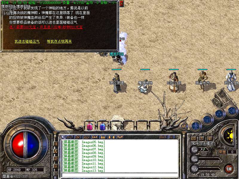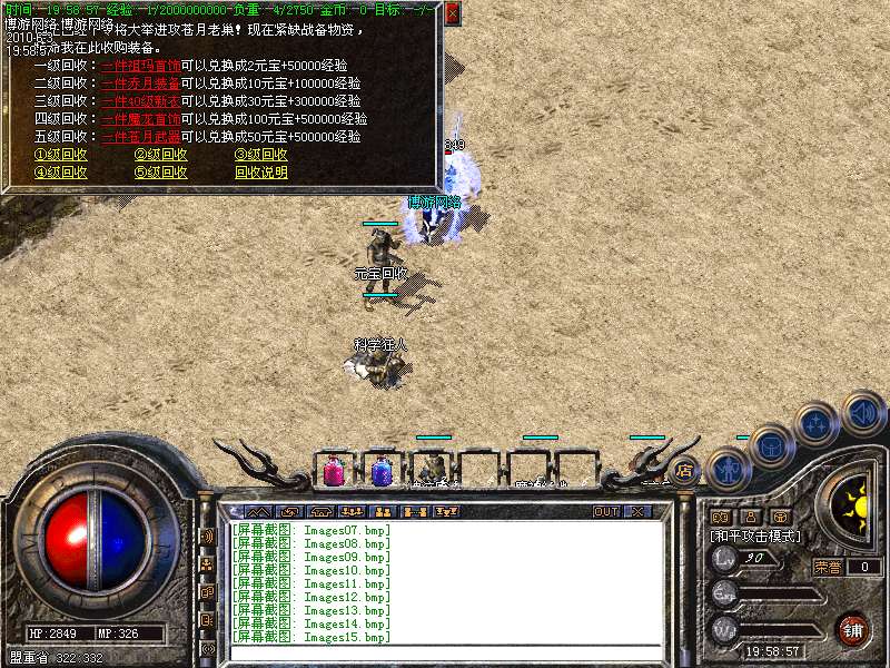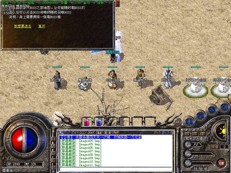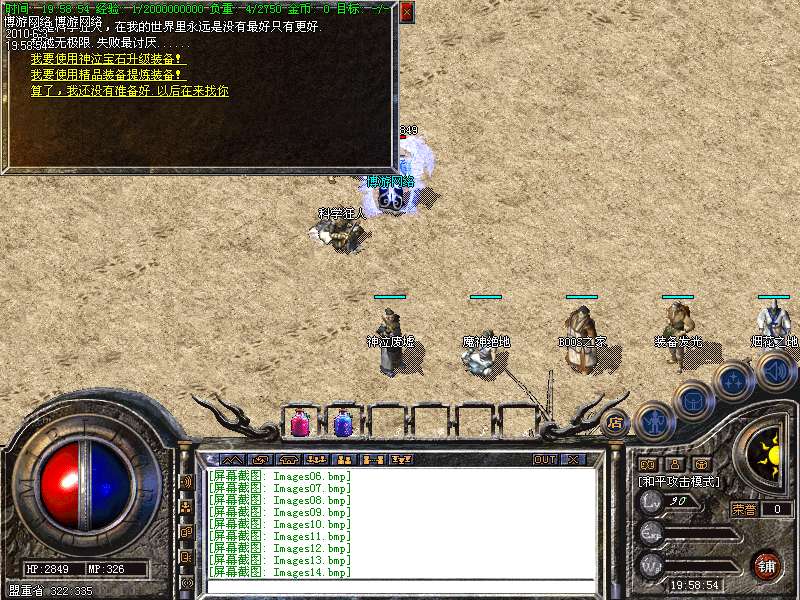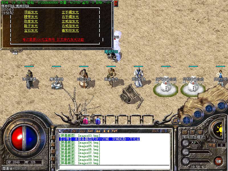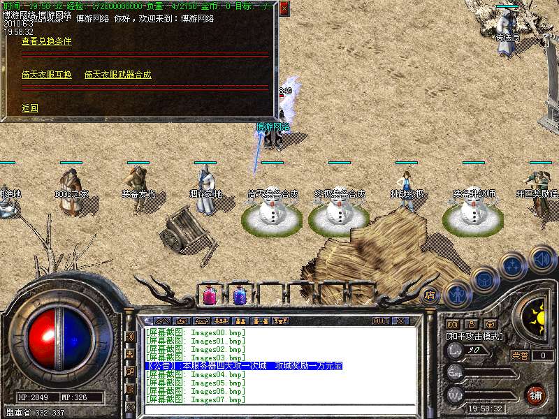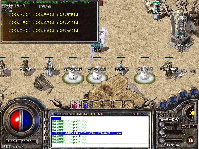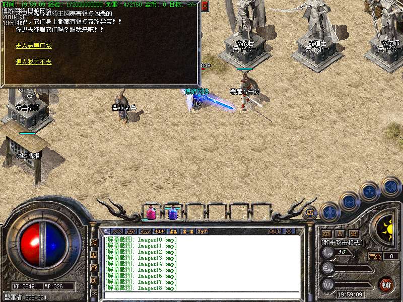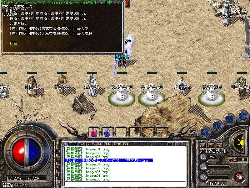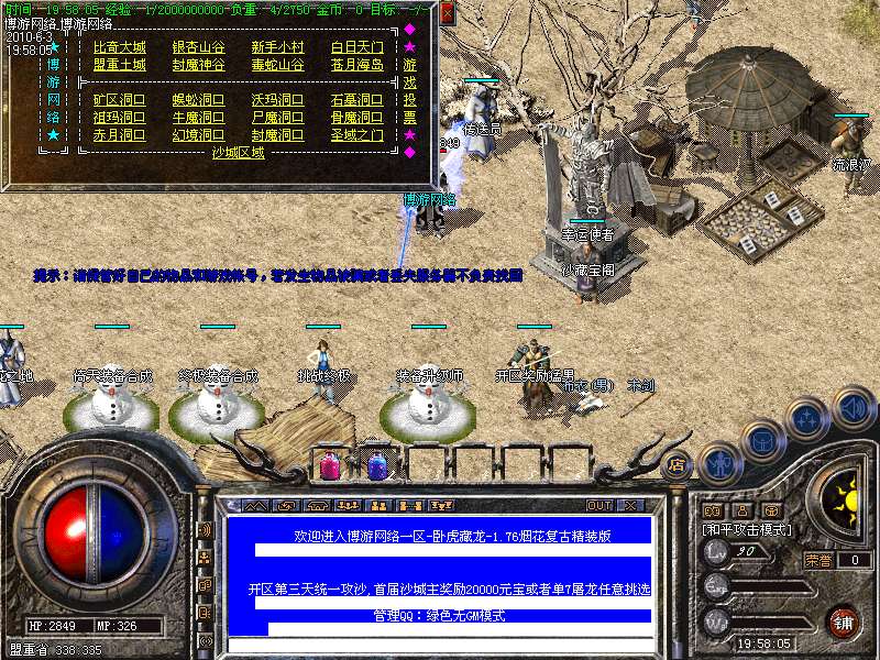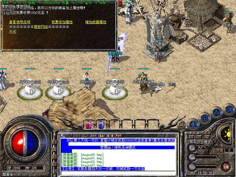 〖公告〗:服务器保证每位玩家的利益,服务器承诺不会为玩家刷任何装备和属性点。一切装备靠打,假如果你觉别人一个人打你4家人,就说GM帮他调属性你可以离开,人家PK用的是太阳包,攻击药水。你用上以后也会出来这种感觉