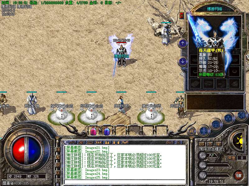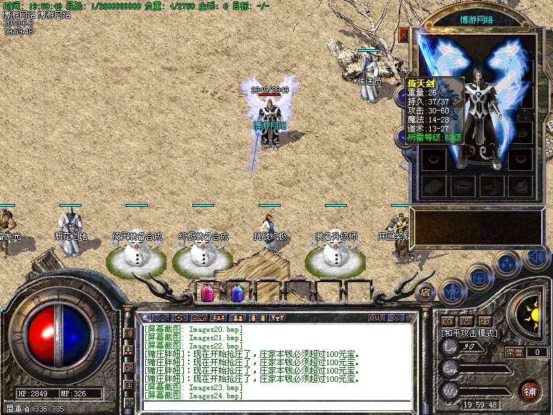 新增倚天套,终极套新装备,装备增加属性等新功能,为我们博游网络独自开发!