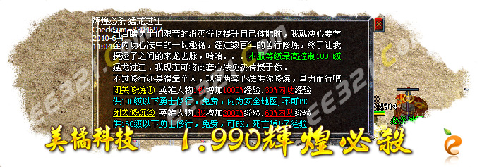 游戏介绍② 本服等级控制为200级,免费闭关可修炼至200级,无收费闭关修炼.