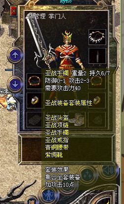 增加套装效果,如穿齐全套圣战装备会获得攻击力+10的额外属性