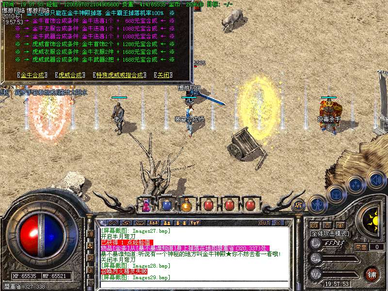 【公告】本服最新推出终级装备.[金牛套装] .火龙不在是终极装备.在金牛神殿地图,贵宾地图和火龙地界都有爆出.每一个地图都加入一个BOSS魔影巨人,爆终极装备,方便不是会员的玩家