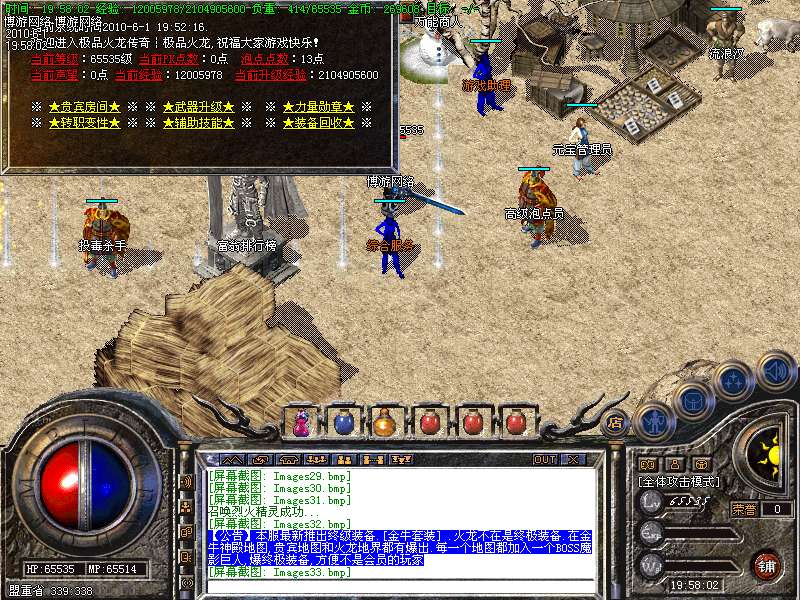 【公告】各个安全区自动喊话的NPC都是假的,系统喊话是红字和蓝字,所以请玩家特别注意不要上当.本服唯一客服无GM