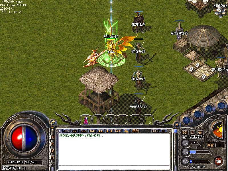 3、新人进区后为100级,有装备一键元宝回收系统,不冲元宝,可打装备回收卖元宝。新人升级可到比齐僵尸洞、练级圣地、石墓阵。