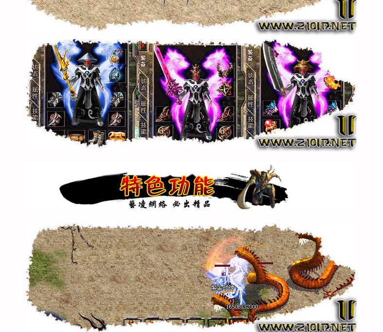 [特色]:升级速度飞快,瞬间满级,荣耀,虎威装备全暴,免费玩家的天堂!