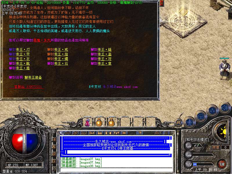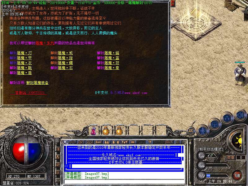 为了让玩家玩的更加**.服务器整体修改怪物爆率.数量.刷新时间! 地图贵族20分钟一刷!BOSS.领主.30分钟一刷。让你体验打装备的乐趣!服务器所有装备全部有爆率!