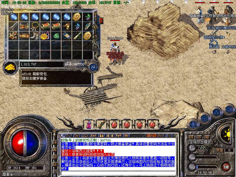 公告:看不到装备的朋友请到公告:高级装备攻略→上古合成(比奇城)→上古镶嵌(白日门)→2转装备(终极炼狱最后一层),每天中午12点30分举行年兽BOOS攻城,有几率爆出新技能
