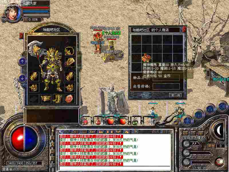!.经过数日的测试,完成游戏的整体协调性;升级速度 怪物爆率 装备属性 PK职业平衡性做了重大调整(本服决不是让普通玩家没办法生存的游戏类型)