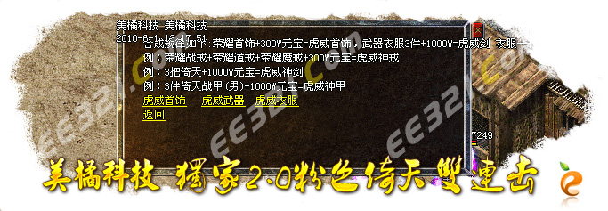 当前版本名称:美橘科技-独家2.0粉色倚天|黄色倚天|战天龍血套