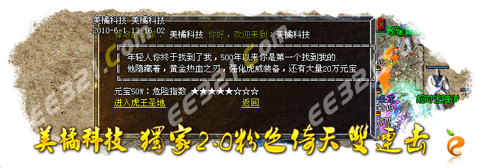 游戏介绍①: 升级速度飞快,瞬间满级,荣耀,虎威装备全暴,免费玩家的天堂!