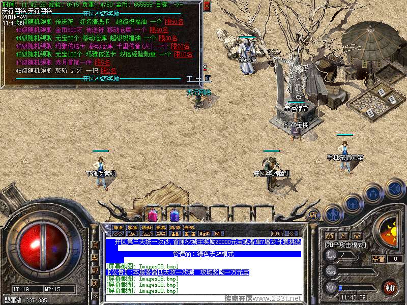 【怪物增加】土城药店每12小时刷新一只BOOS爆怪物攻城令牌1/1,封魔皇宫每12小时刷新一只BOOS爆终极武器爆率为5/1.