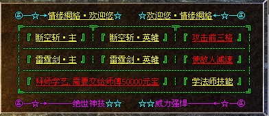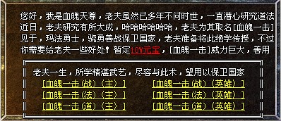 游戏介绍②:人物,英雄上线自动学会连击招式,技能送至5级,内功送36级,无须大家再花钱学习