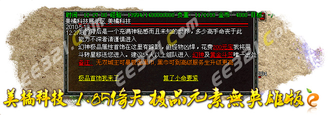 [56]特别提示:在每天的下午3点,6点,晚上10点,12点会开放武器专爆地图!必爆开天,镇天和玄天一把和天龙刀!进入地图需要赌筛子才可以进入!具体情况自己去体验!
