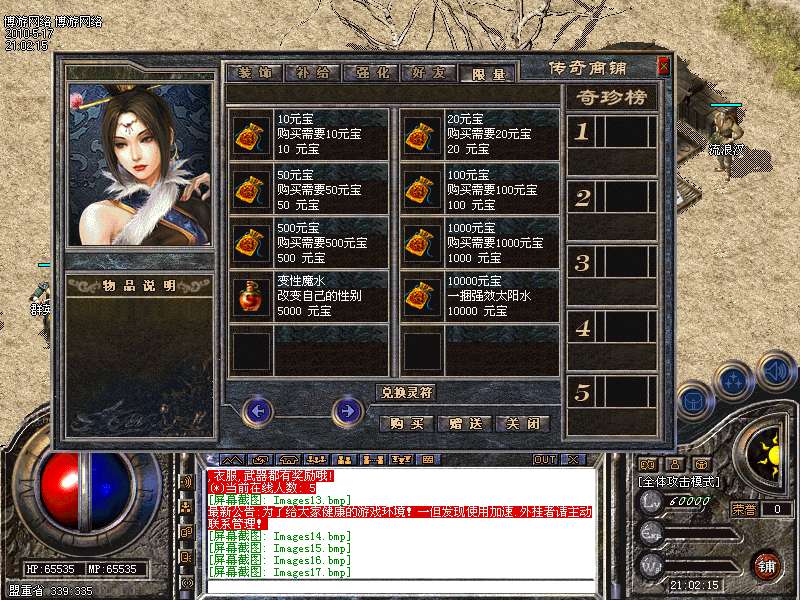 ★冲级奖励★各个级别奖励请到土城NPC综合服务员查询!元宝,衣服,武器都有奖励哦!