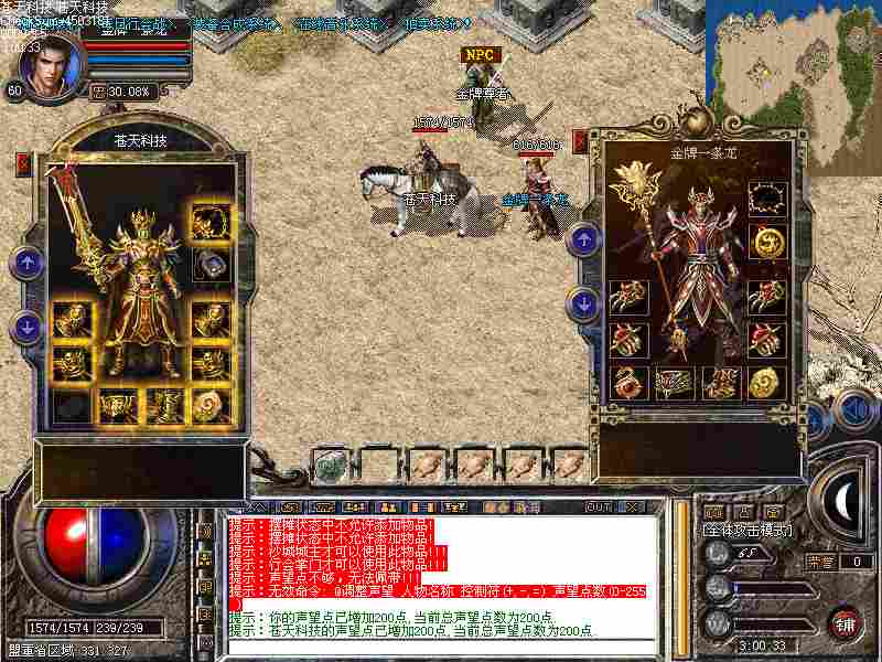[装备系统]:完全仿盛大最新的装备,全部装备完全按照官方最新属性和外观,无需另外装备补丁,装备较多。