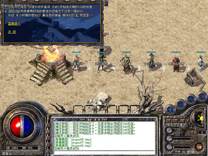 4.增加天堂之路地图脚本,此地图任务脚本前五层闯关地图,第六层汇集全服所有BOSS