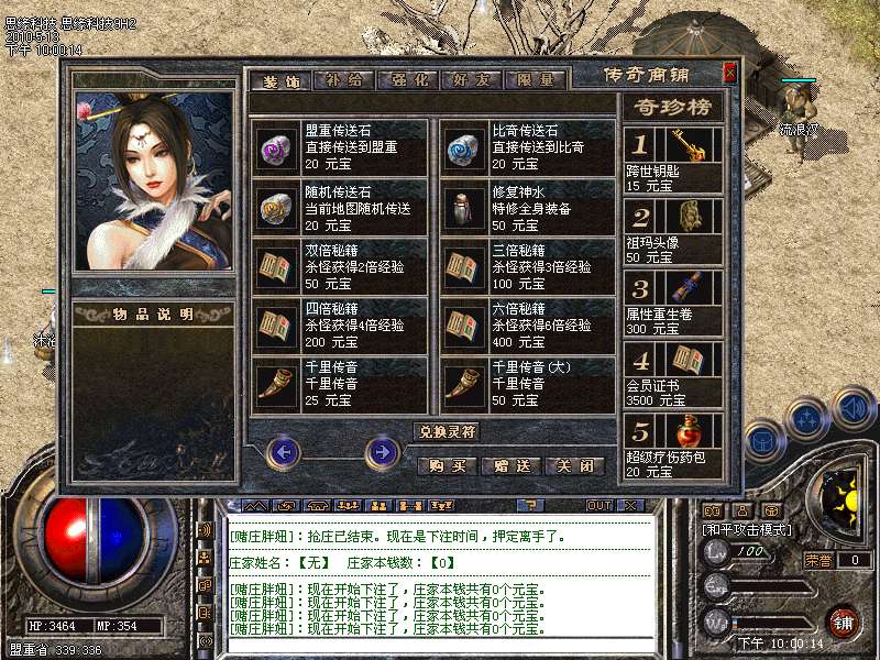 b.镇魔神石: 60分刷新一只千年法魔爆本服所有装备,开天类武器2暴1