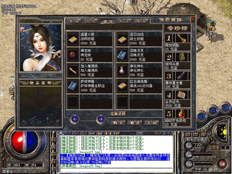 5.更新地图:天堂之路.龙门阵九层.镇魔神石.神秘之地.更多精彩.宝藏等待你去开启.