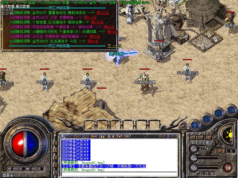 提示:本服务器高级怪物30分钟刷新,沙宝阁怪物60分钟刷新,新衣服暴率为1/100,赤月首饰暴率为1/20,苍月武器1/100。武器最高可升级7点,5分钟可取。赤月恶魔暴屠龙嗜魂,地藏王宝霸者之刃!