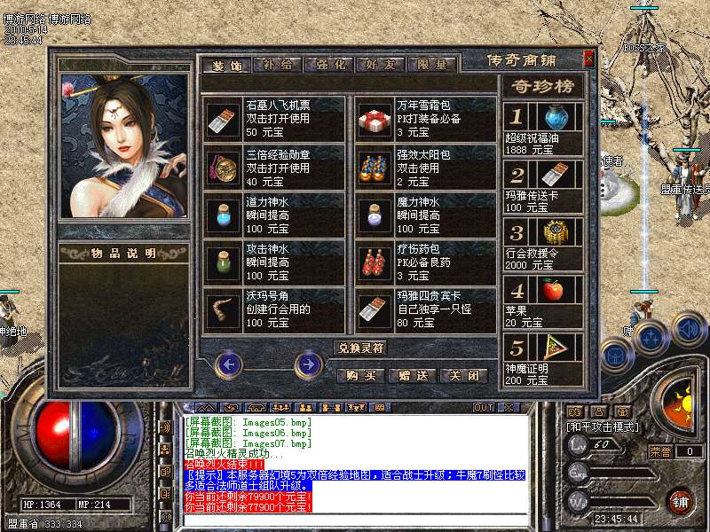 增加石墓八,九地图,狂暴野猪王,必暴终极,元宝!!进入方法:商铺购买石墓八飞机票!双击即可进入。