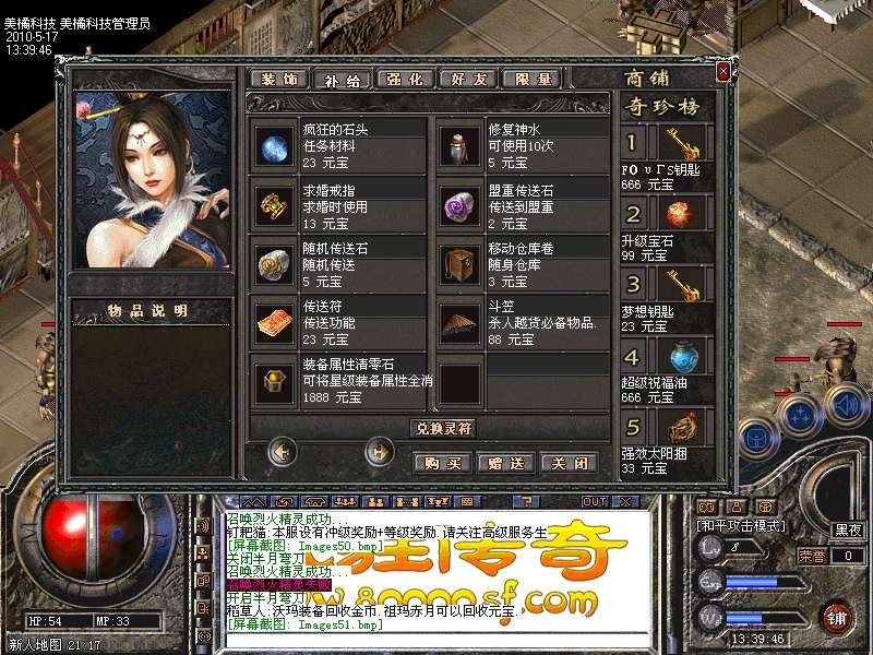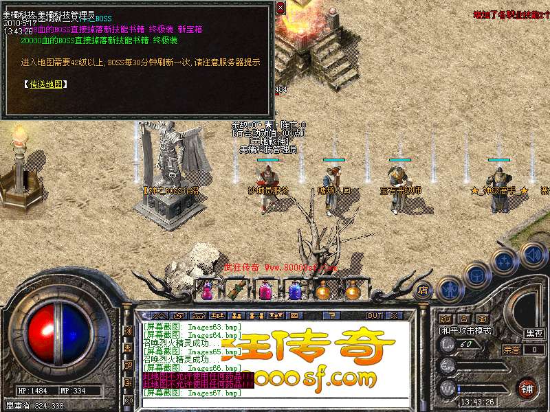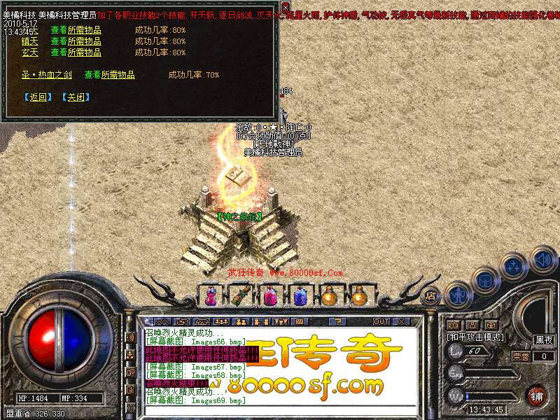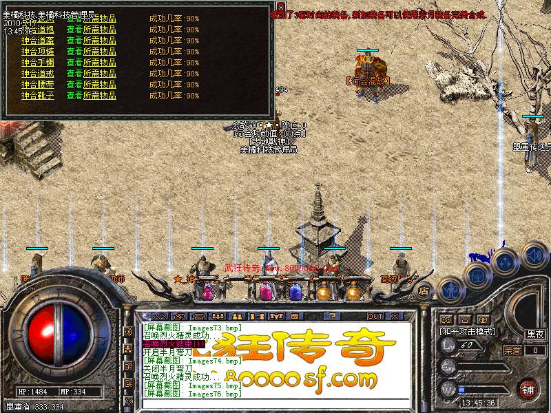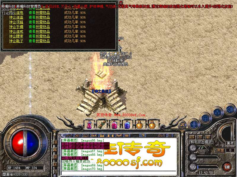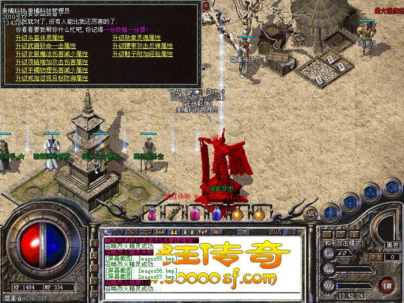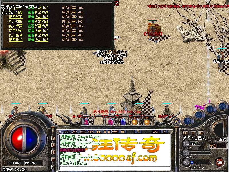 增加了3套时尚的装备,新加装备可以使用赤月装备完美合成,增加了沙城专用武器,此武器需要攻城后联系管理员获得!