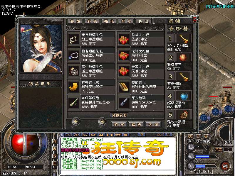 增加石墓八,九地图,狂暴野猪王,必暴终极,元宝!!进入方法:商铺购买石墓八飞机票!双击即可进入。