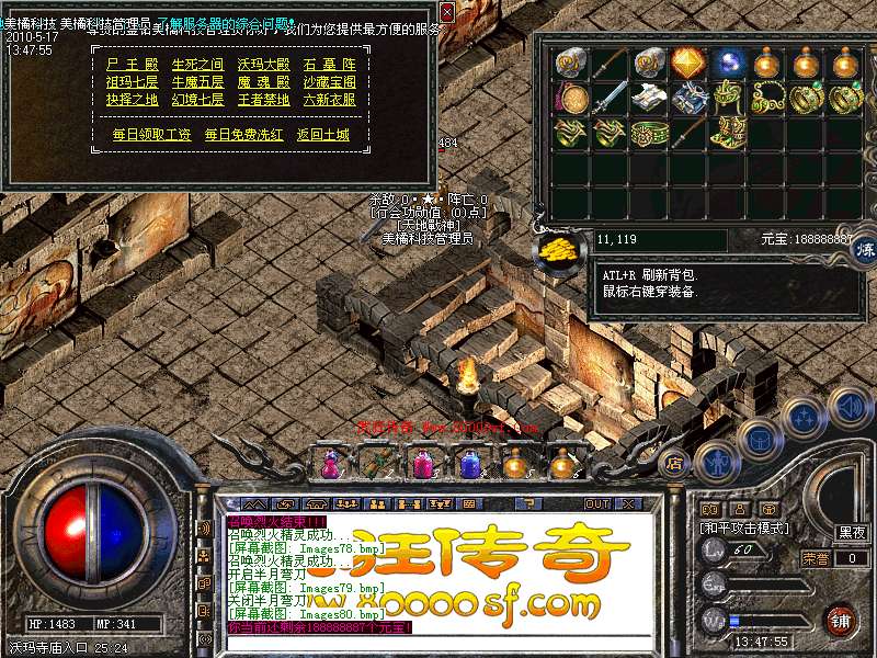 全国唯一的复古版本,唯一不用元宝就可以进入玛雅地图的游戏!真正的公平游戏``在盟重土城药店处会出现石墓尸王,只要您消灭掉就可以直接送您到玛雅神殿.出怪时间为90分中``就是说90分中才可以免费进入一次``