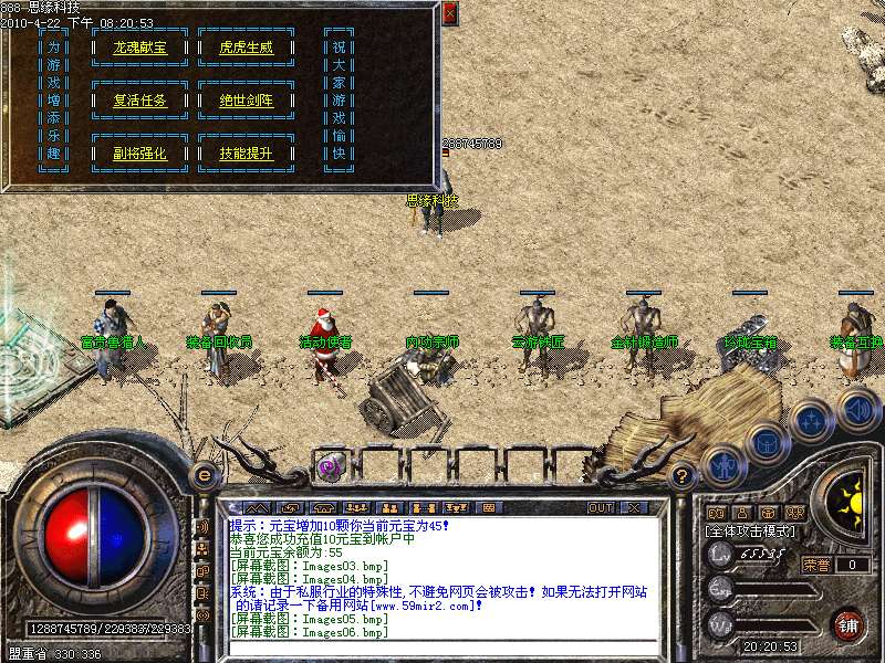 虎威2010年巨献—2.0316虎威双连击版-纵横,加入沙巴克行会押镖系统,四级技能,必杀斗笠,必杀面巾,强化神兽 盛大副将 地图,装备采用全新盛大装备,高额元宝升级奖励, 不断刺激玩家练级激情,此版本是骨灰级玩家首选..