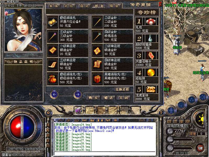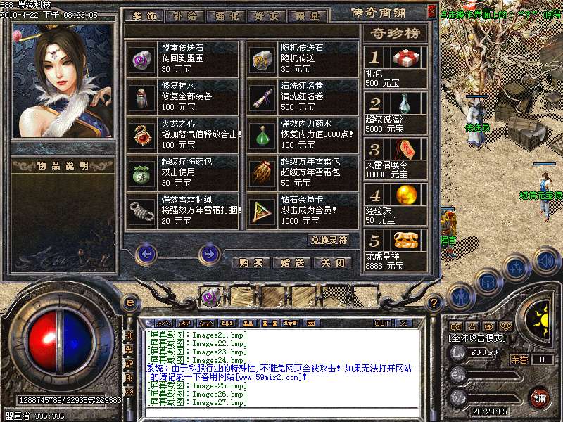 【重宝地图】本服务端特为广大GM增加目前最流行的地图 <众神归来>:此地图爆出炎龙,青龙,雷龙等装备 <万劫魔宅> :,荣耀,倚天等 <四级密室>: 此地图最新的四级技能