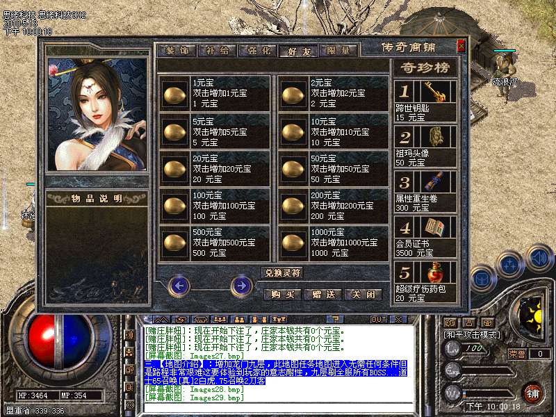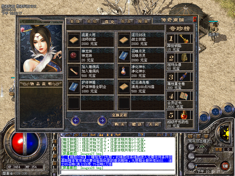 9.元宝爆率: 所有刷新BOSS的地图均有守护神存在.例如沃玛大殿也有!特为散人研发