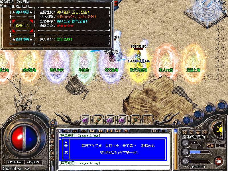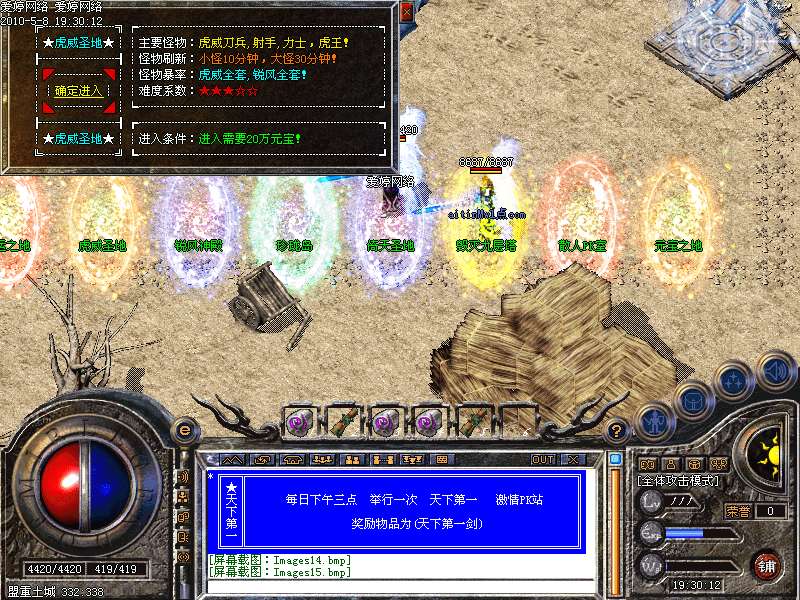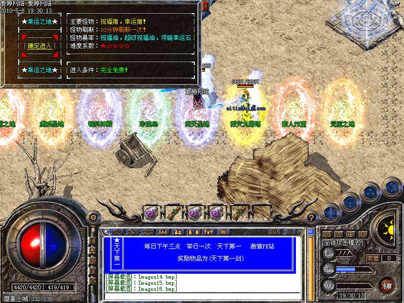 ①.天下第一:每职业等级第一名随时在土城左下角申请,可获得1.2倍攻魔道!