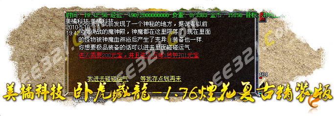 〖提示〗:不要抱怨装备不好打,因为本服是长期服,走服玩家请绕行;不要抱怨别人的装备好,如果你付出了,你一定会更强!