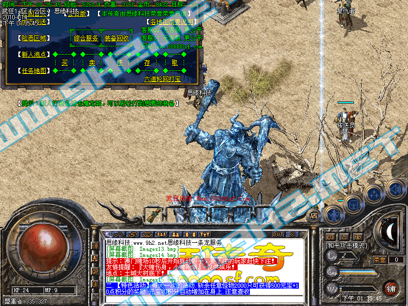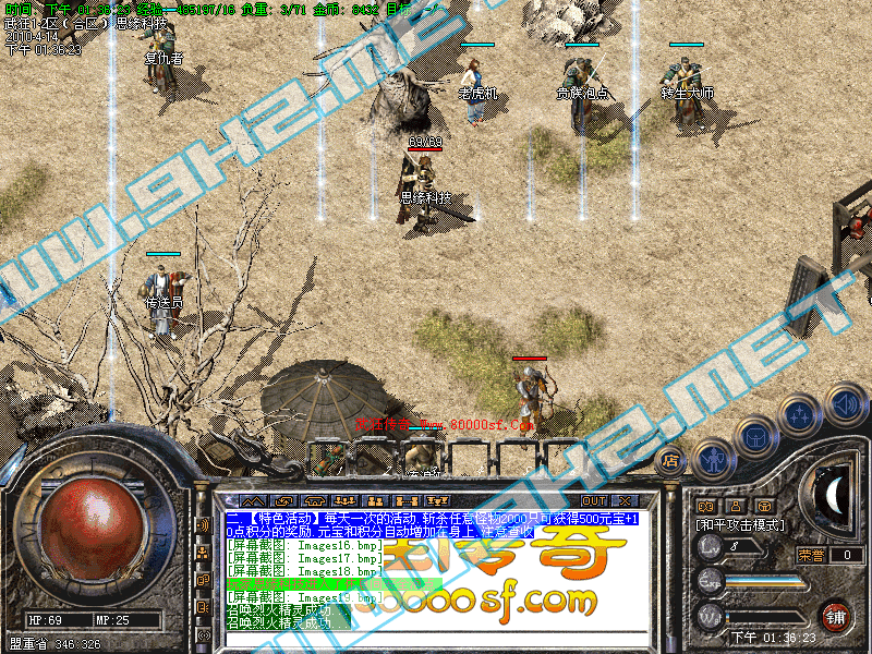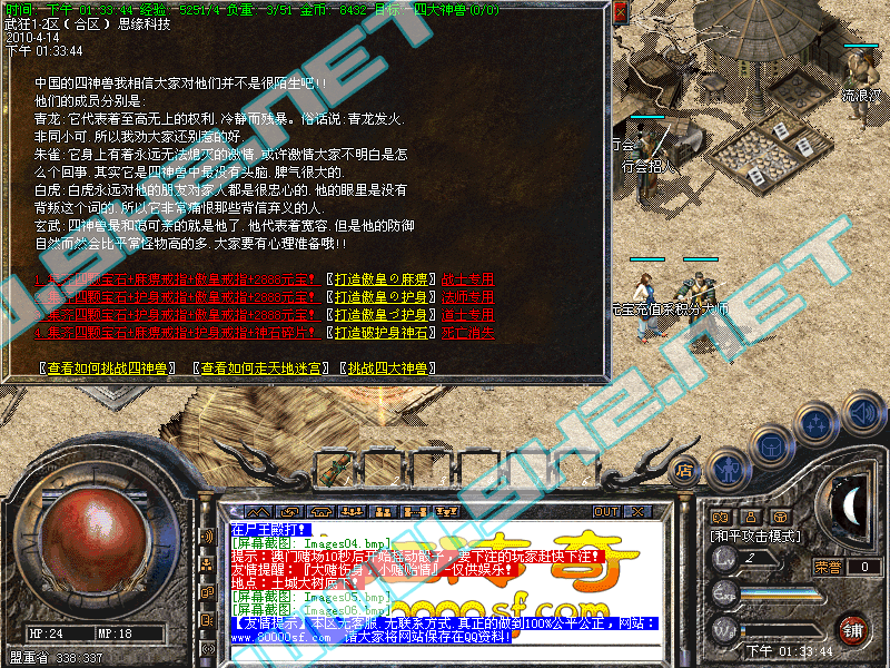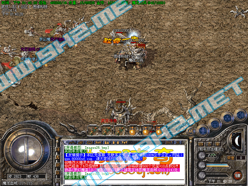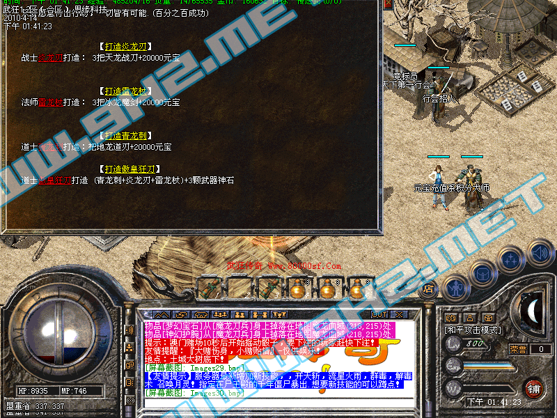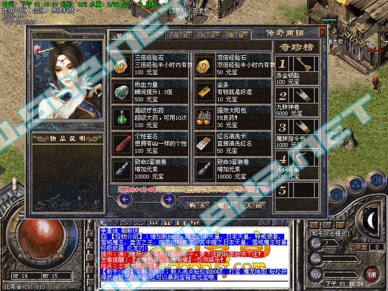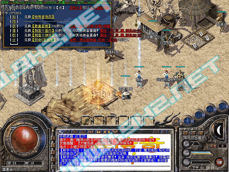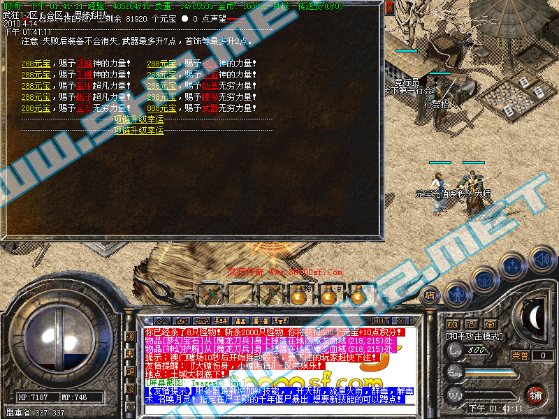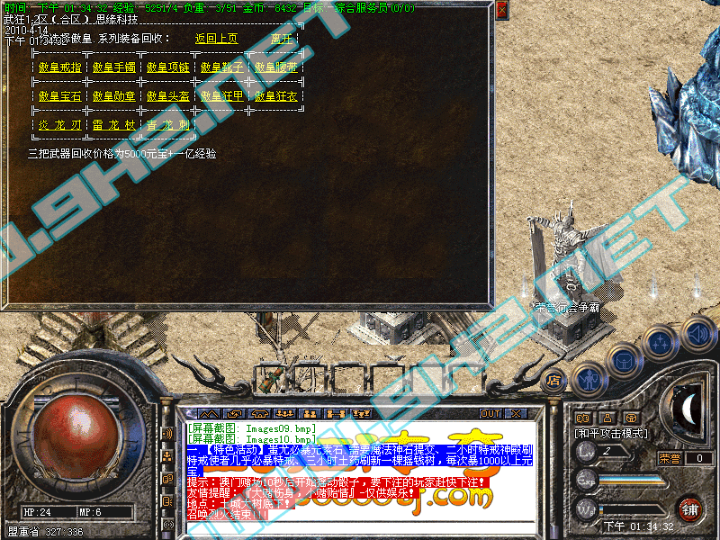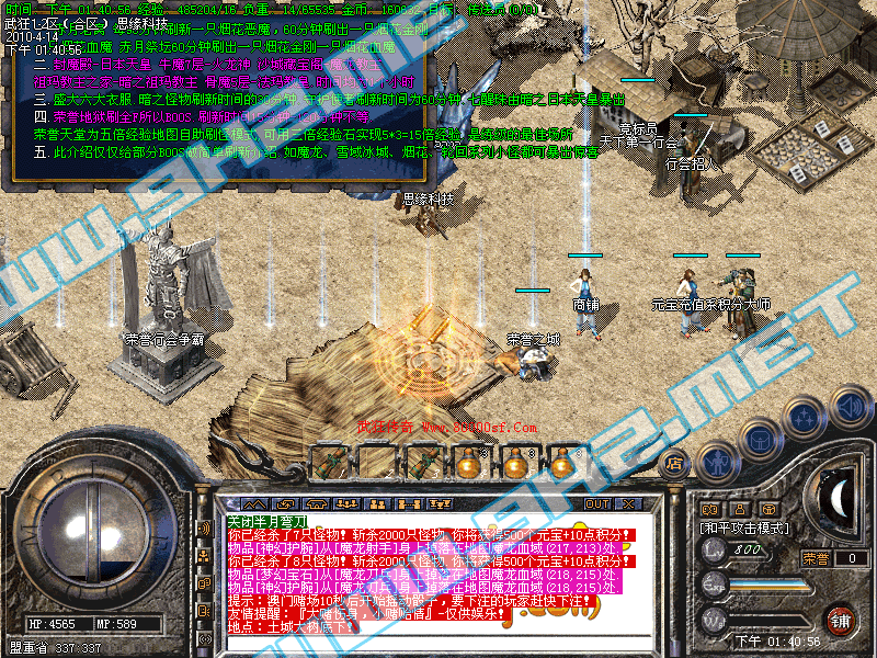 六.【特殊刷新】用魔法神石在土药旁边的魔法结阵可召唤出蚩尤.使用魔法神石召唤的同时可获得丰富的奖品.包括炎龙刃 致命2套装卷 傲皇首饰及武士神石 合成仙丹