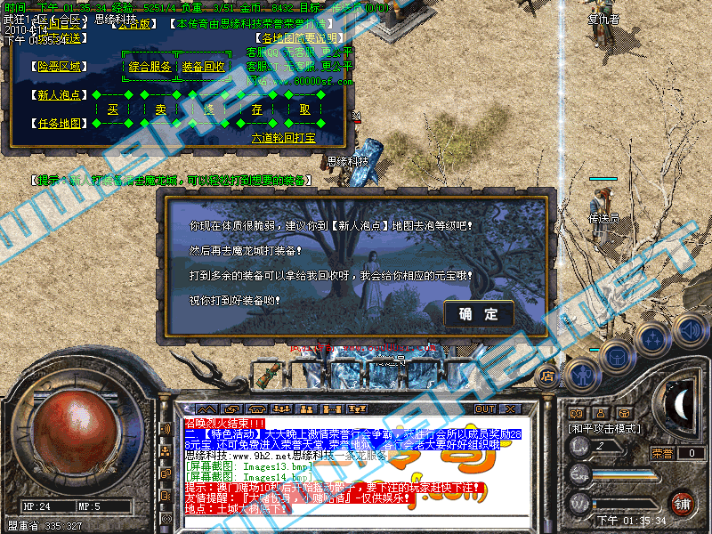 【新手介绍】:新手练级:新人泡点轻松到80级. 打宝:魔龙地图.轻松获得武装自己的装备.还可以暴到宝箱卖元宝哦.